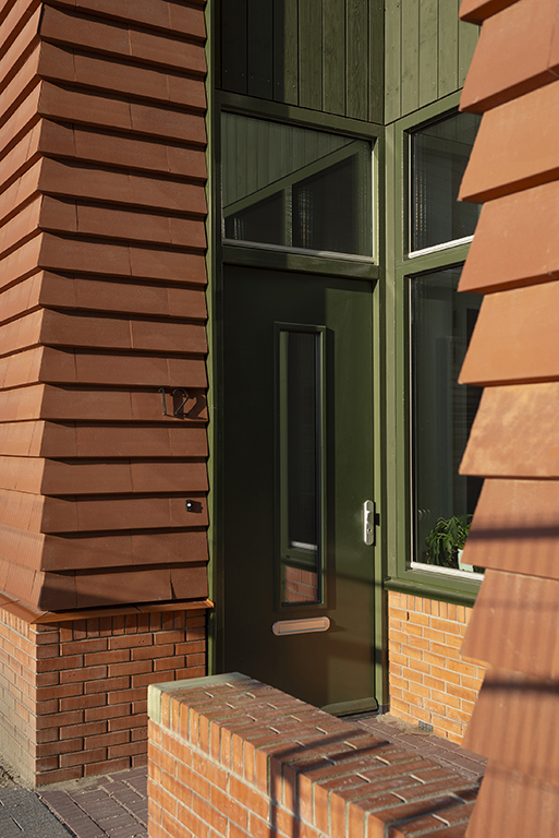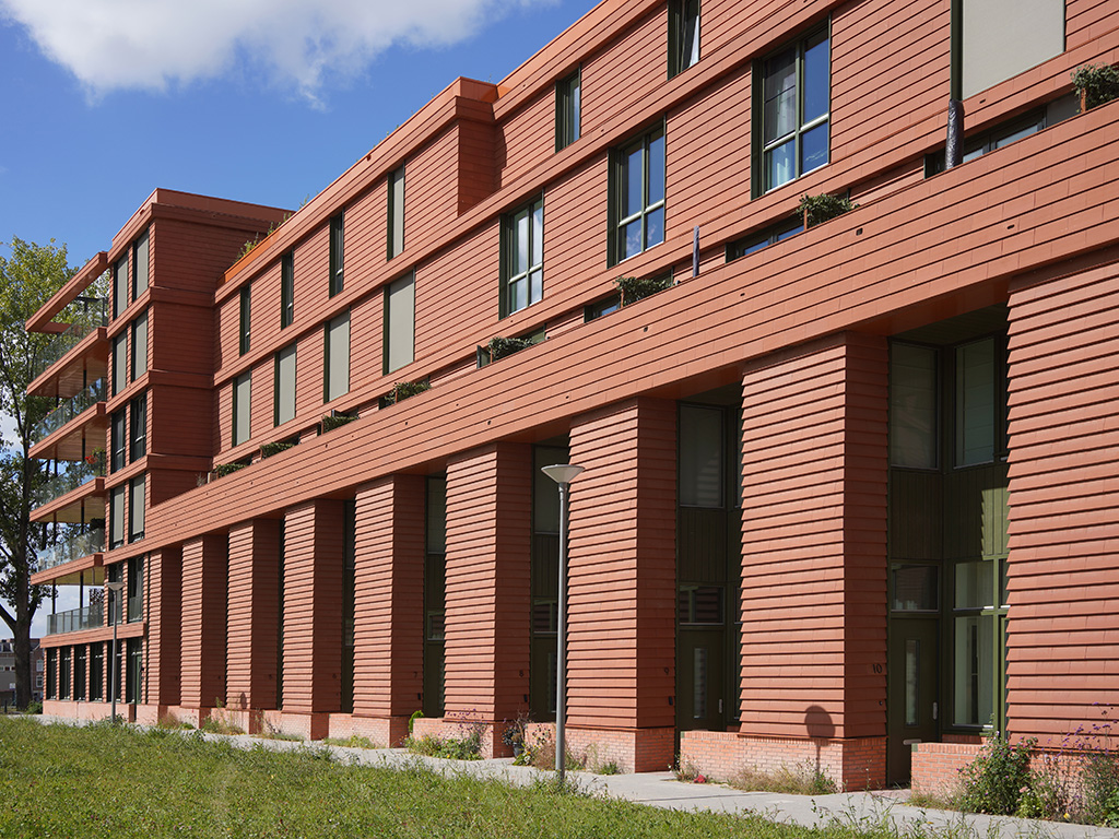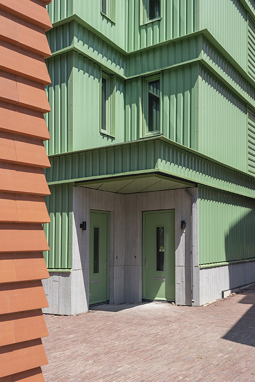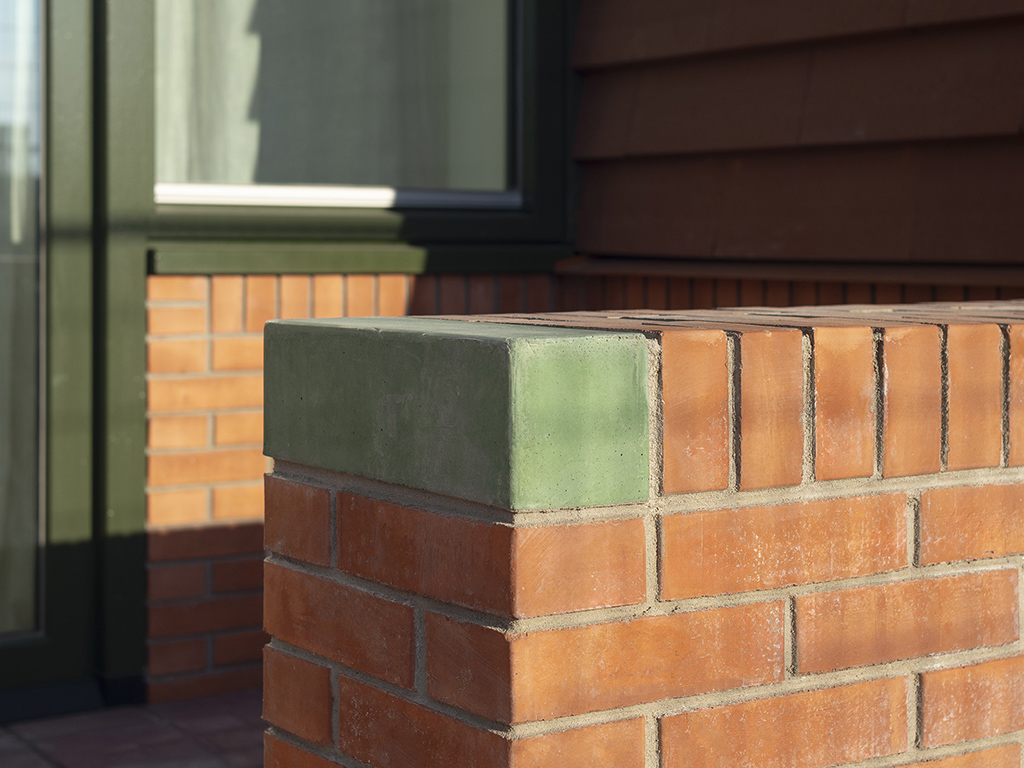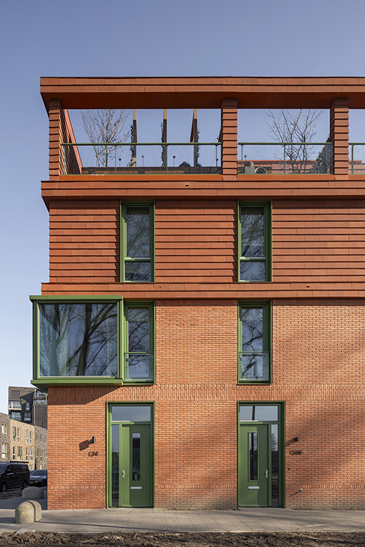 Waar de welstandsparagraaf duidelijk was: Baksteen is de norm, hebben we de traditionele invulling hiervan willen oprekken door een demontabel dunner alternatief voor te stellen met eigentijdse expressie. De dunne keramieke elementen bevatten zes keer minder klei dan hun traditionele equivalent. Dit vermindert de ecologische voetafdruk en hergebruik is door demontage mogelijk. Met diepteverschillen in het materiaal, sculpturale bouwmassa en integratie van nestkasten wordt aangetoond dat circulair materiaalgebruik functioneel en esthetisch vooruitstrevend kan zijn.