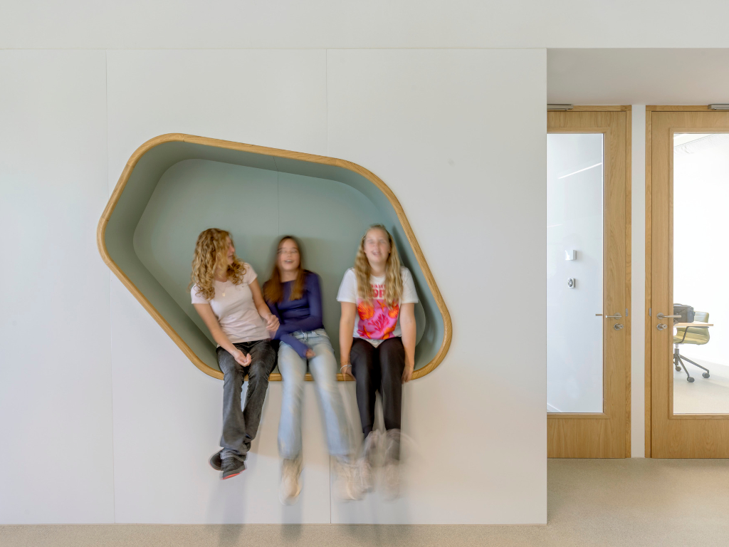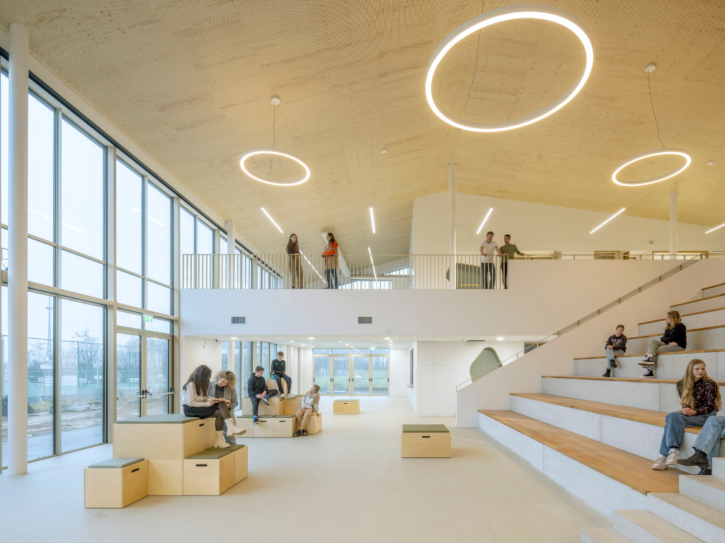 In het gebouw ontwierp BDP een dynamische, adaptieve leeromgeving rond twee harten: een levendig sociaal hart en een rustiger studiehart. Klaslokalen, studio’s, praktijklokalen en werkplekken zijn rond deze harten gegroepeerd en ondersteunen het flexibele onderwijsconcept waarbij klassikaal leren, projectmatig werken en zelfstudie elkaar veelvuldig afwisselen. Het groene schoolplein, het polderlandschap met haar sloten en windsingels, en de informele buitenlokalen, die gebruikt worden voor kunstvakken, wetenschappelijke experimenten en kookonderwijs, zijn integraal met het gebouw ontworpen, waardoor er een sterke relatie is tussen het onderwijs en haar omgeving, en tussen onderwijs en gemeenschap.