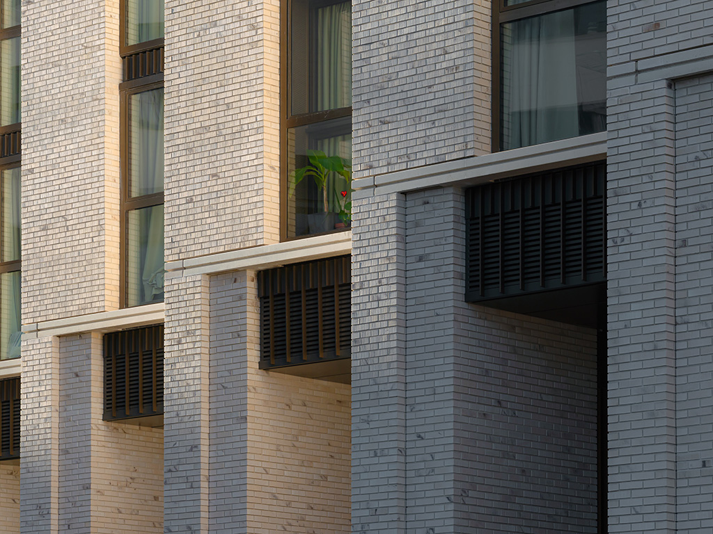 Elke woning heeft een privé buitenruimte, geïntegreerd in het gebouwvolume. Aan de zuidzijde zijn dit royale inpandige balkons; aan de noordzijde in de toren loggia’s, als oplossing voor geluidsbelasting van het naastgelegen spoor.
