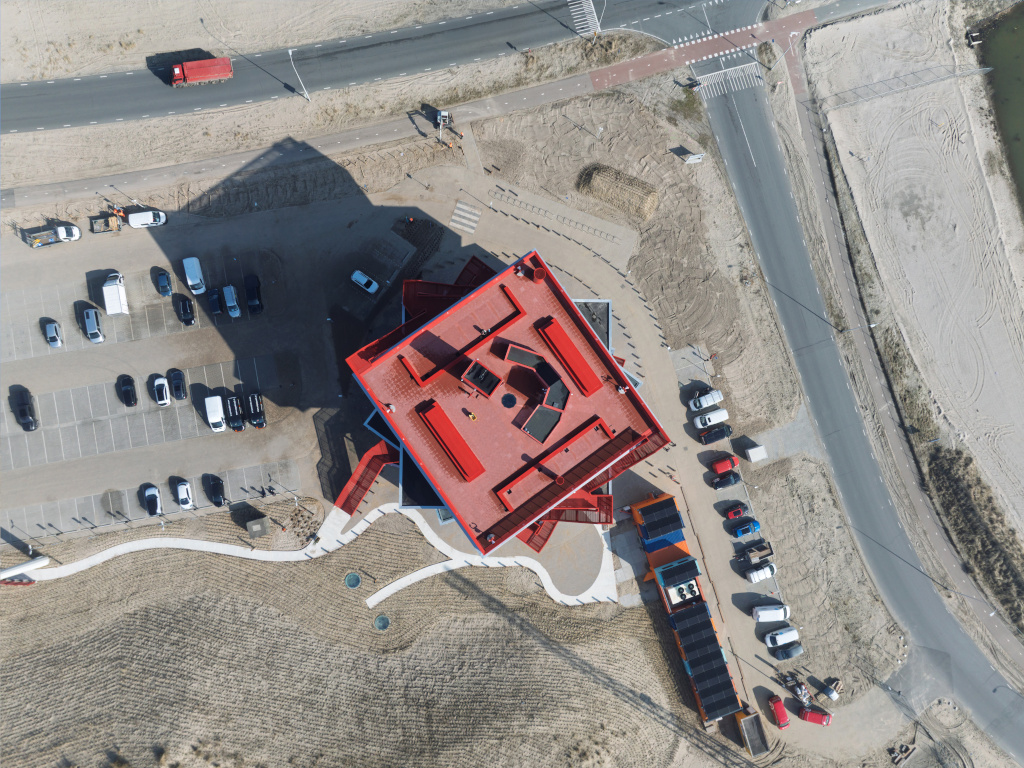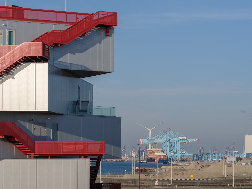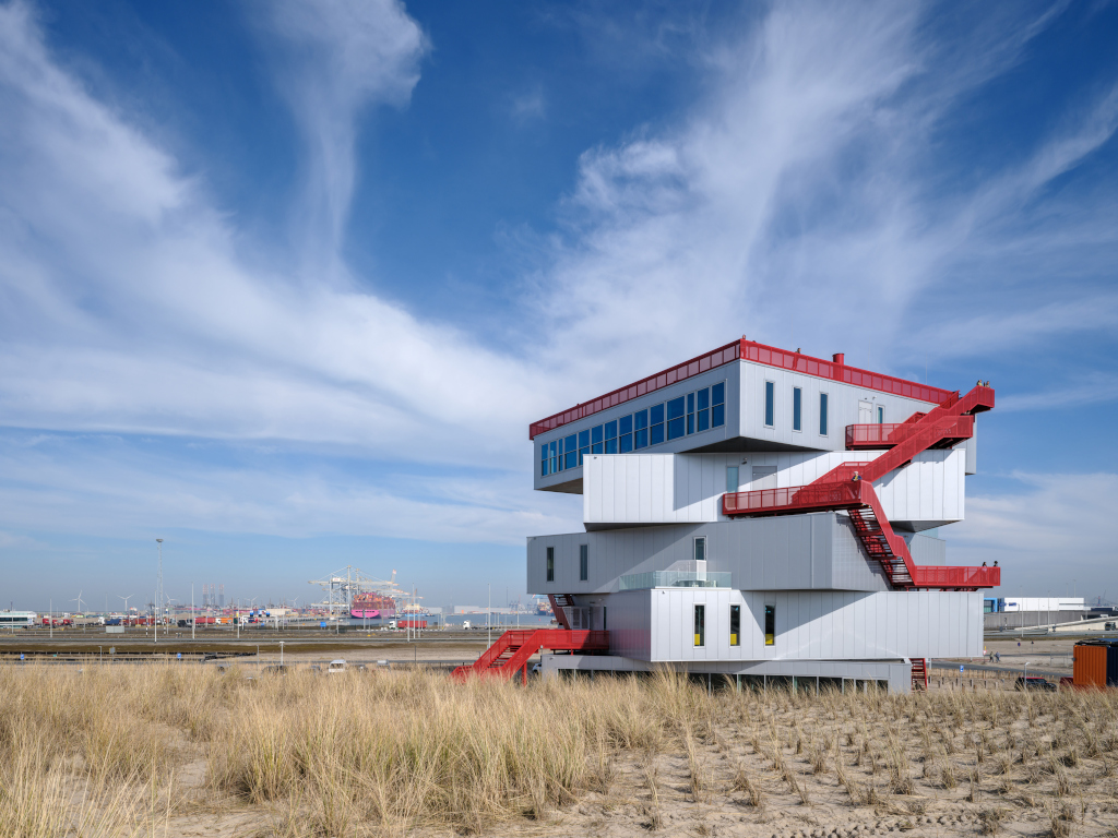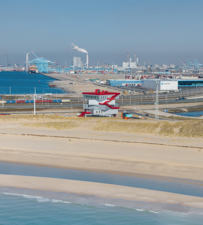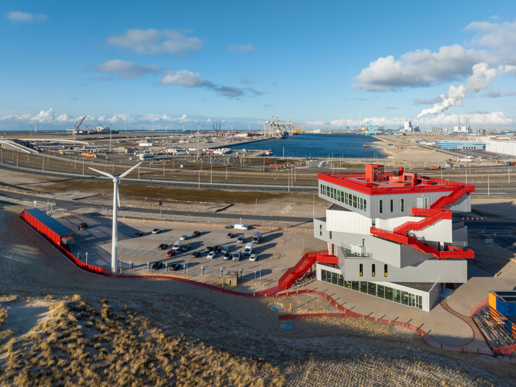 Rotterdam en zijn haven zijn al eeuwenlang nauw met elkaar verbonden. Nu de haven een belangrijke duurzame transitie ondergaat, rijst de vraag: hoe kan men meer begrijpen en leren van deze verandering? Vandaag opent Portlantis zijn deuren, een nieuw tentoonstellings- en bezoekerscentrum ontworpen door MVRDV. De gestapelde vorm met vijf gedraaide verdiepingen steekt scherp af tegen de ruige omgeving op het meest westelijke punt van de haven op de Tweede Maasvlakte. Opvallende rode trappen rondom het gebouw leiden bezoekers naar het dak met vergezichten over zee, de kustlijn en de haven.