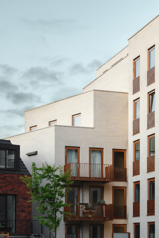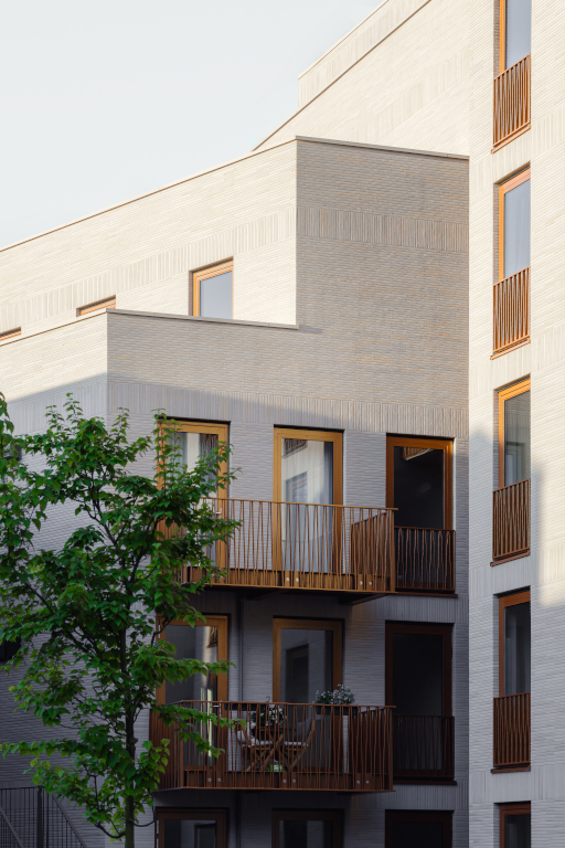 De pleingevel is kleinschalig met oog voor de naastliggende panden, de tuingevel is ingetogen en de stedelijke grachtgevel van het gebouw valt op door de toepassing van baksteen vloerranden en ‘koperen’ erkers. Deze unieke positionering creëert een diversiteit aan uitzichten en ervaringen voor bewoners. Daarnaast huisvest het gebouw een scala aan woningtypen waardoor het een inclusieve en gevarieerde woonomgeving vormt.